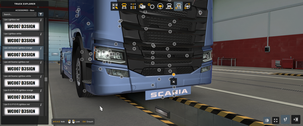 MOD description: Scania nextgen R and S bumper extension old Scania lightbox, suitable for mid, high bumper