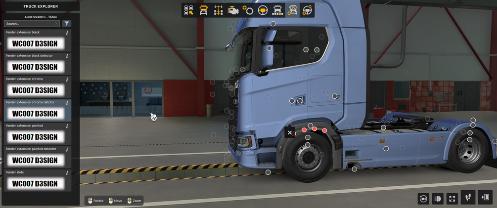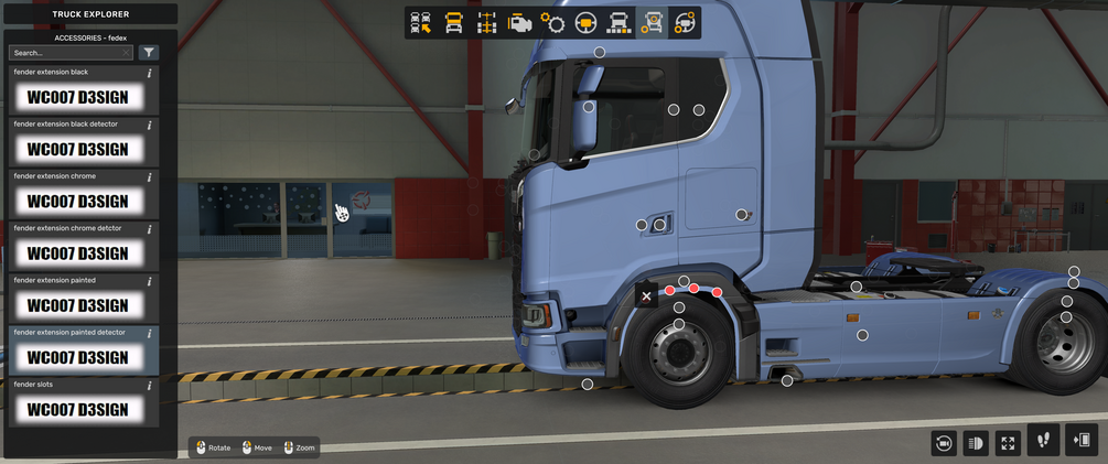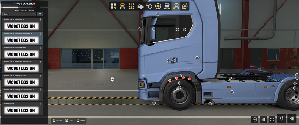 Scania NG front fender extension mod works only with Scania no spoiler mod V1 or Scania no spoiler mod V2 and not work with and Base game Scania truck