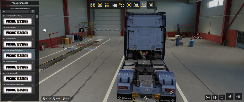 MOD description: Scania NG old skool rear bumper battery cover for all chassis, chrome, painted, black.