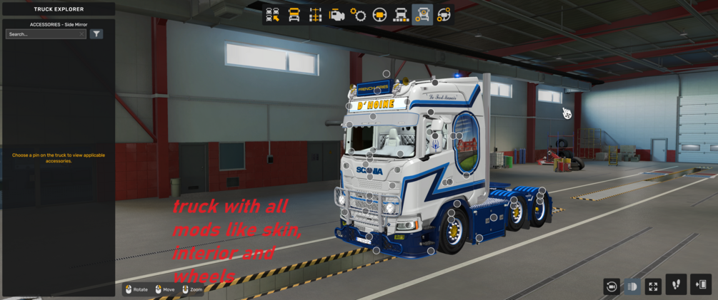 Replaced base SCS S model and tuning addons, using with other mods or types of nextgen cabins cause dont work correct. Scania From D´Hoine with tuning options