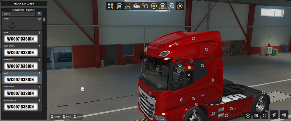 MOD description: Daf XD painted, black chrome or stock side mirror