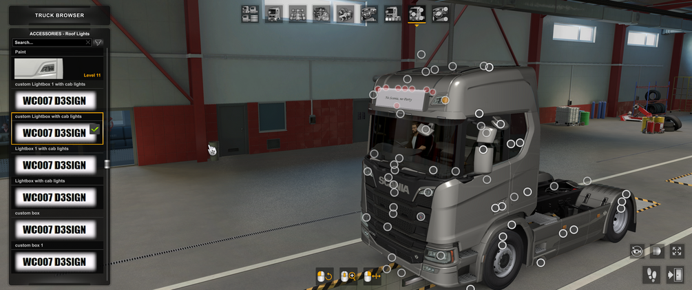 MOD description: Custom lightbox with cab lights for all Scania Nextgen cabs made for All Scania Nextgen cabs