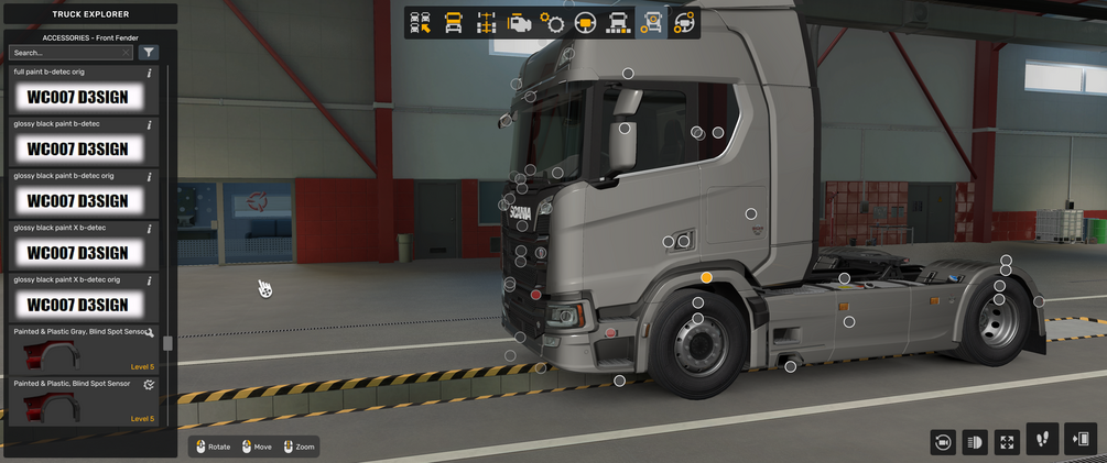 !!!!!ADDONS WARNING!!!!!!: Don´t contain addons only slots, for active slots you need addon mod https://sellfy.com/wc007d3sign/ets2-base-addons/MOD description: Scania NG fenders with blind spot detector with extra slots for lights