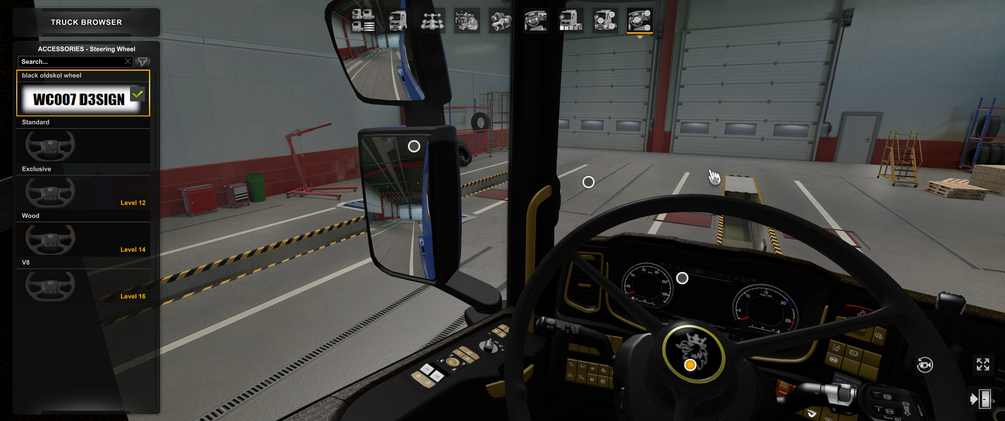 MOD description: Special black and yellow with old skool steering wheel for all S and R Scania Nextgen types except UK versions.