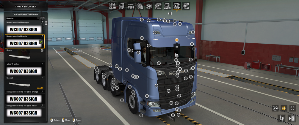MOD description: Scania Nextgen Moens sunshield with white or orange lights