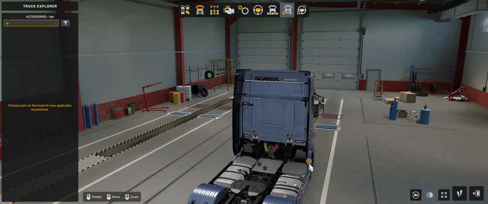 Suitable for Scania NG backwall, sideskirts for Scania NG, rear exhaust for Scania NG, Scania NG front grill, (tested with mods from our store)