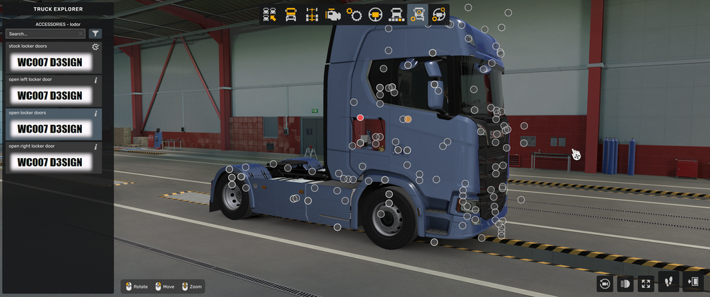 Scania NG open side locker doors works only with scania no spoiler mod V2, not work with V1 version and Base game Scania truck