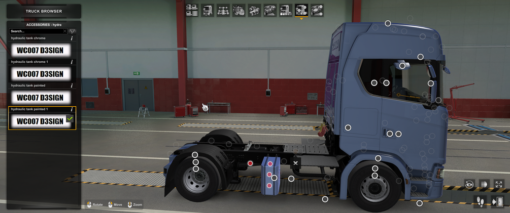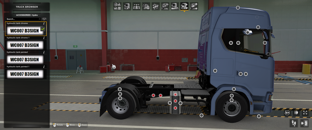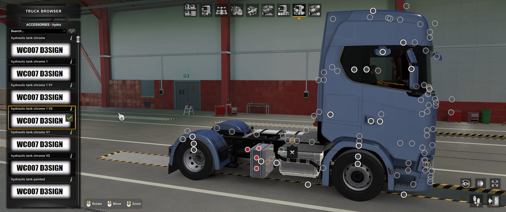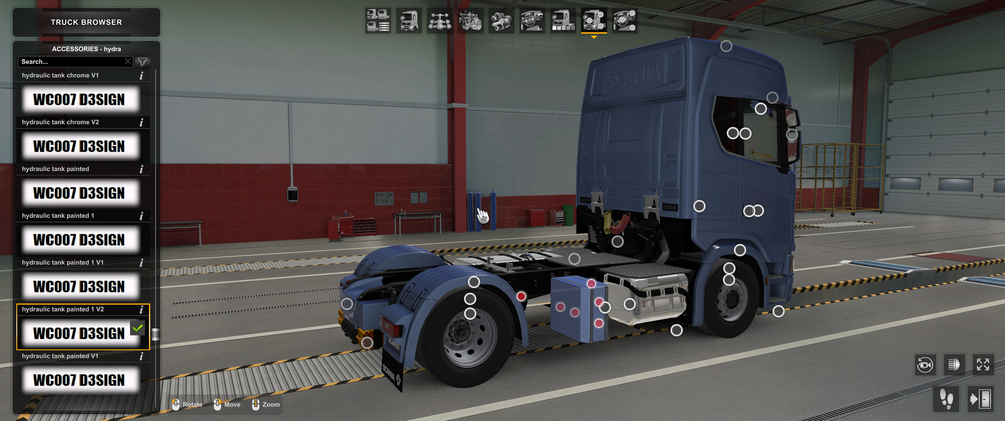 Hydraulic tank mod works only with scania no spoiler mod V2, not work with V1 version and Base game Scania truck
