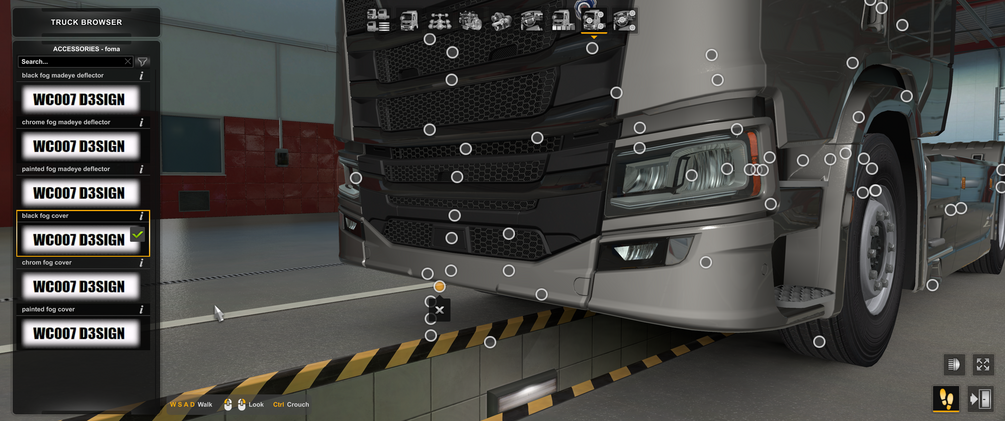 MOD description: Scania Nextgen fog lights covers (black, painted, chrome)