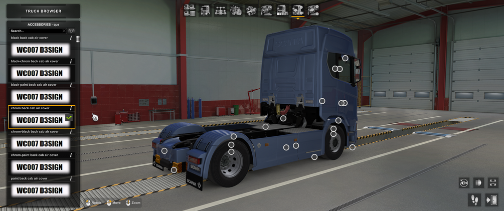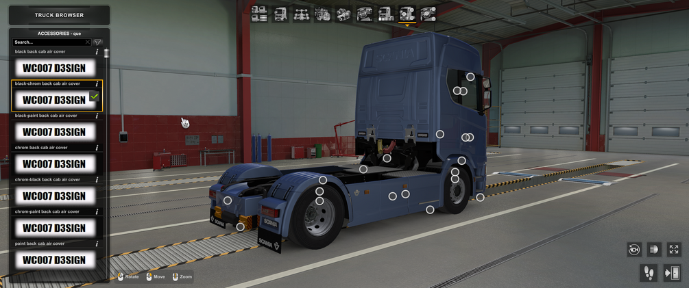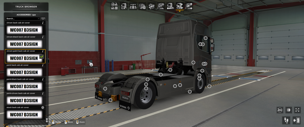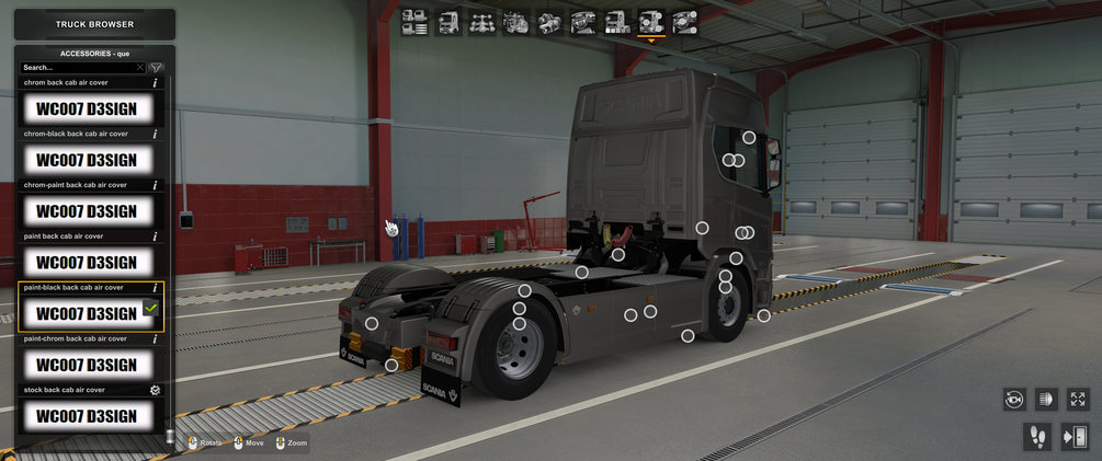Back cab air vents works only with scania no spoiler mod V2, not work with V1 version and Base game Scania truck